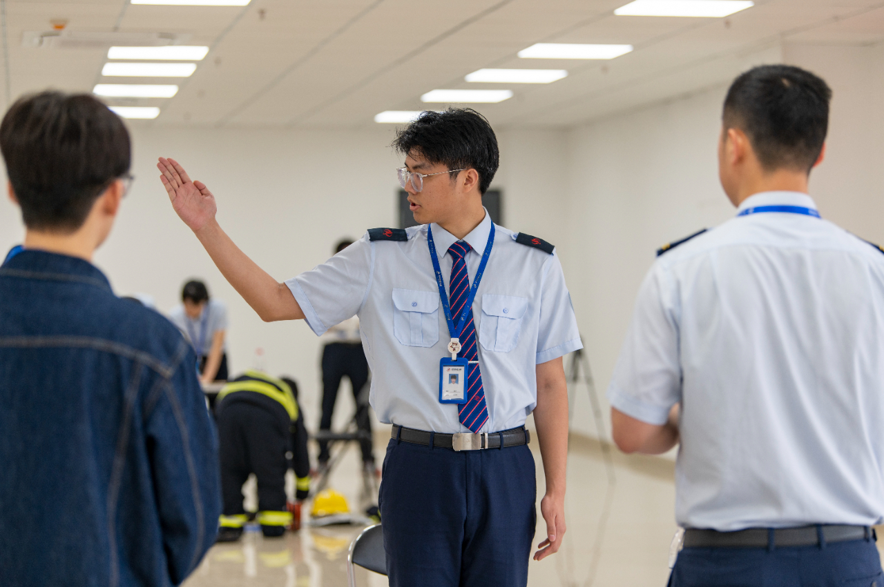 6月11日,在浙江省金華市金義東市域軌道交通工程塘雅車輛段,青年職工選手在參加軌道交通服務(wù)禮儀項(xiàng)目技能比武。