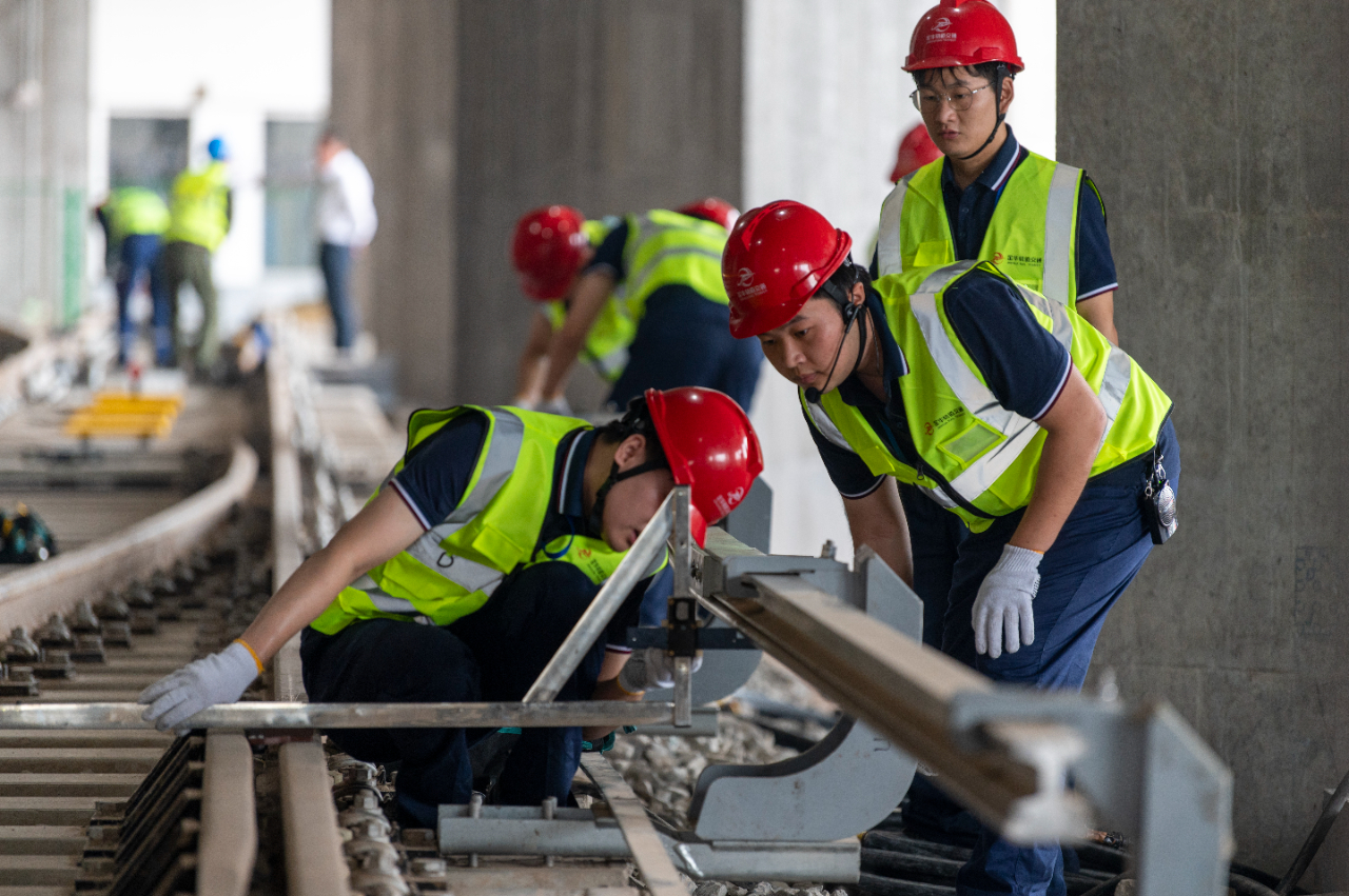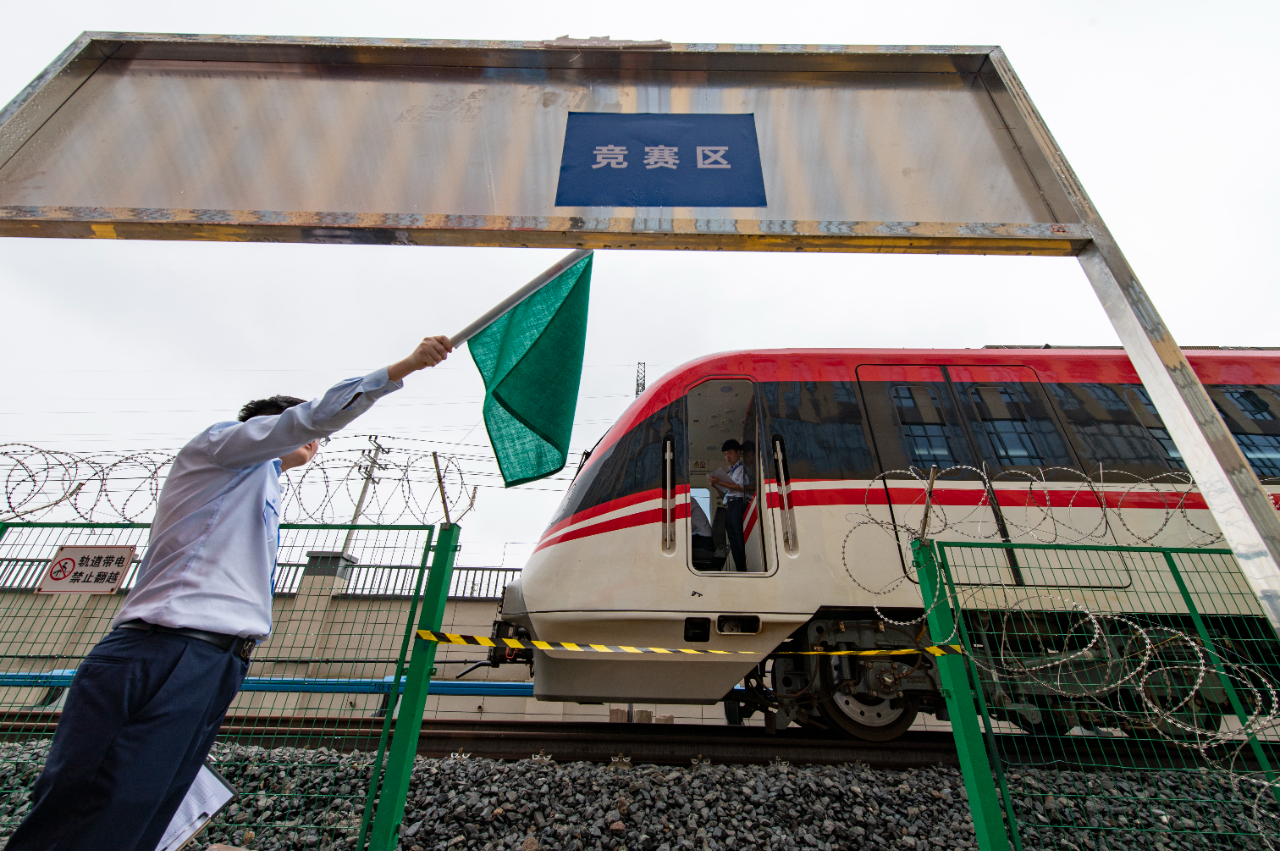 6月11日,在浙江省金華市金義東市域軌道交通工程塘雅車輛段,青年職工選手在參加軌道交通車廂安檢項(xiàng)目技能比武。當(dāng)日,浙江省金華市舉行第三屆軌道交通青年職工技能比武大賽。從全市1000多名專業(yè)人員中選撥出來(lái)的282名青年職工選手參加應(yīng)急處置、服務(wù)禮儀、手動(dòng)駕駛、行車故障處置等13個(gè)項(xiàng)目的角逐,全面提升城市軌道交通從業(yè)人員的業(yè)務(wù)技能水平,推動(dòng)技能人才隊(duì)伍高質(zhì)量發(fā)展。