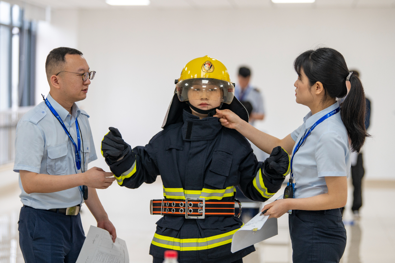 6月11日,在浙江省金華市金義東市域軌道交通工程塘雅車輛段,青年職工選手在參加軌道交通應(yīng)急處置項(xiàng)目技能比武。
